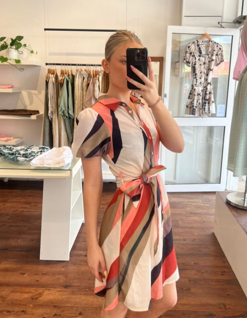 Cleo Short Sleeve Dress in Earthy Tonal Print