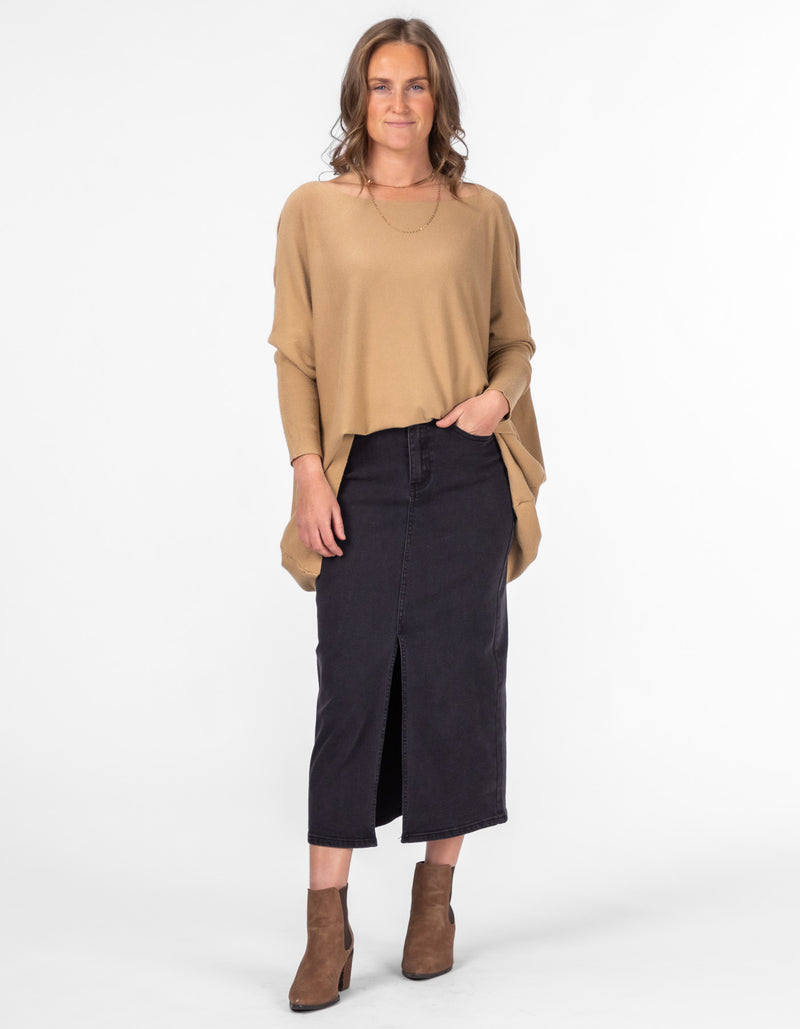 Monika Oversize Knit Jumper in Black/Mocha Stripe